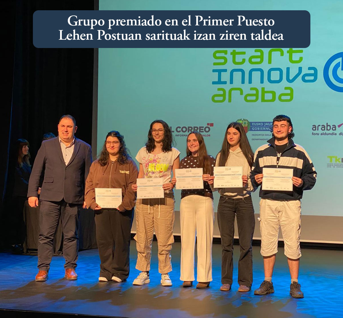 En la entrega de premios celebrada el 12 de marzo, resultó ganador el equipo formado por estudiantes de segundo curso de Mediación Comunicativa: InkluNet, integrado por Martina, Nerea, Anne, Aitzol y Sara.